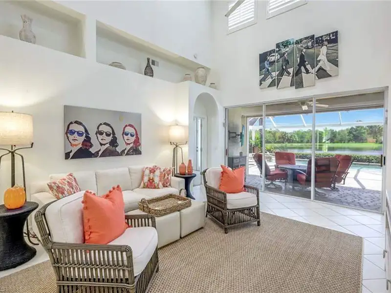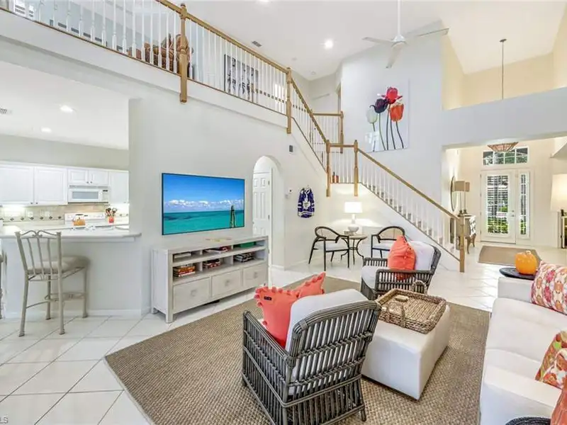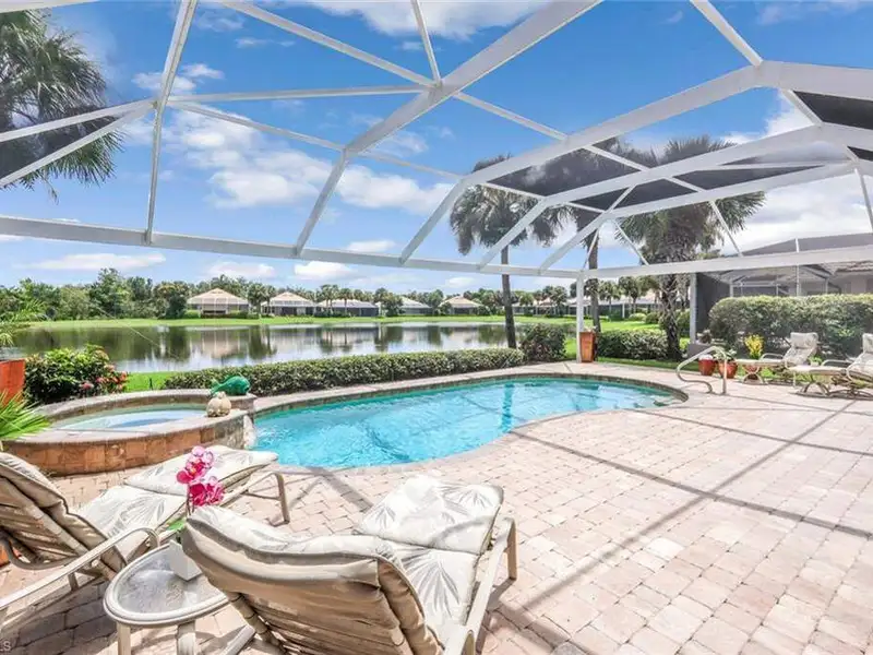 This amazing TURN-KEY Furnished Kingfisher home is located in Laurel Meadow, a prime neighborhood within Shadow Wood at the Brooks. NO WAIT FOR THE FULL GOLF MEMBERSHIP, SKIP THE WAIT AND BECOME A FULL MEMBER DAY 1. Just minutes from the main gate, you can bike to the Commons Club or enjoy a short ride to Coconut Point Mall. From the moment you step inside, you're greeted with spectacular southeast views across a wide lake framed by a natural preserve. The light and bright interiors, fun artwork, Clive & Daniels furnishings create what we call a true "happy house." The primary suite and den are conveniently located on the first floor, with stairs leading to a spacious loft and two upstairs guest bedrooms that share a full bath. The most striking feature is the oversized brick pavered lanai with your resort pool and spa. Home has a new roof, 2025 freshly painted and a "WOW" lake and preserve view. All new pool cage showcasing two picture-window screens for seamless water and preserve views. Additional highlights include electric hurricane shutters on the lanai, a garage with extra storage and refrigerator, and a spacious kitchen pantry. The kitchen features white raised-panel cabinetry, a center wood block island, and plantation shutters that enhance the windows throughout. The primary suite offers two walk-in closets, while custom light fixtures and modern ceiling fans add style throughout. Tile in all the living areas, carpet in the bedrooms. This home is offered turnkey furnished and comes with a no-wait Full Golf Membership to Shadow Wood Country Club-skip the line and enjoy immediate full golf privileges. The Commons Club is also available, offering private beach access, on-site dining, state-of-the-art fitness, pickleball, and vibrant cultural and social activities such as concerts and art in the park. Fiber to the home provides lightning fast internet and television. Member owned Shadow Wood Country Club offers 54 holes of championship golf, 2 club houses, 9 Har Tru tennis courts, bocce, outdoor fire pits, access to a private beach club, fitness center, full-service spa, pickle ball, and private restaurant. New Lifestyle Amenity Center will add 2 resort style pools with zero-depth entry, lap lanes and dedicated kids pool, poolside restaurant & bar, 6 indoor pickleball courts, new racquet pro shop and a grab & go cafe. Great location close to shopping, beaches, airport and much, much more. Truly the perfect property for someone ready to turn the key and live their best Southwest Florida lifestyle today. Schedule your private preview.