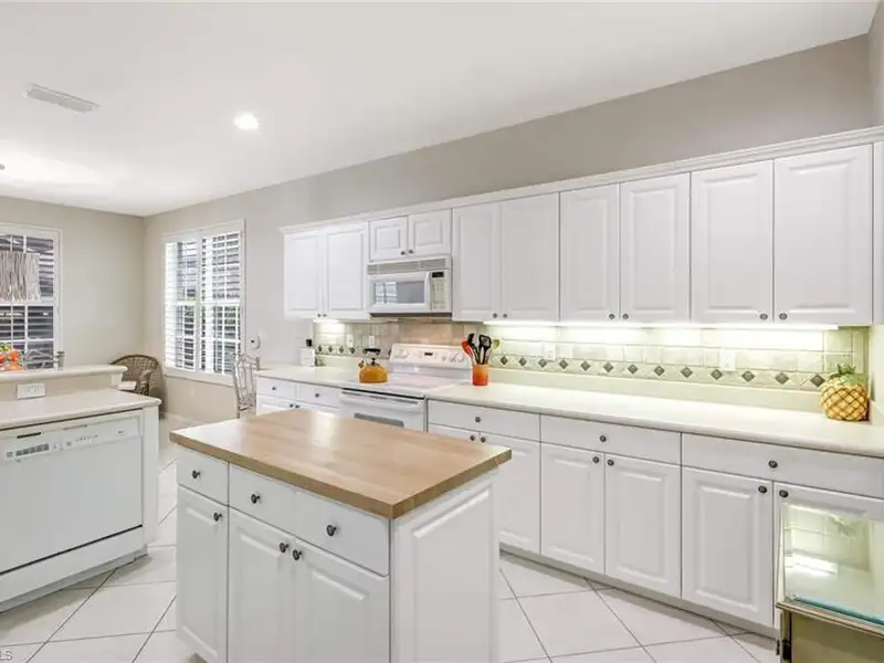 • Kitchen with center wood block island