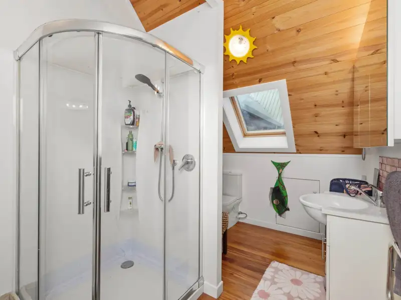 The ground floor comprises three well-appointed bedrooms, a family bathroom, and a separate shower room. A staircase leads up to the master suite, complete with an en-suite bathroom and private balcony. This versatile floor also includes a kitchenette, an attic office, a generous studio space with a separate toilet and a large northeast-facing deck – perfect for a private retreat, guest wing, or home-based business.
