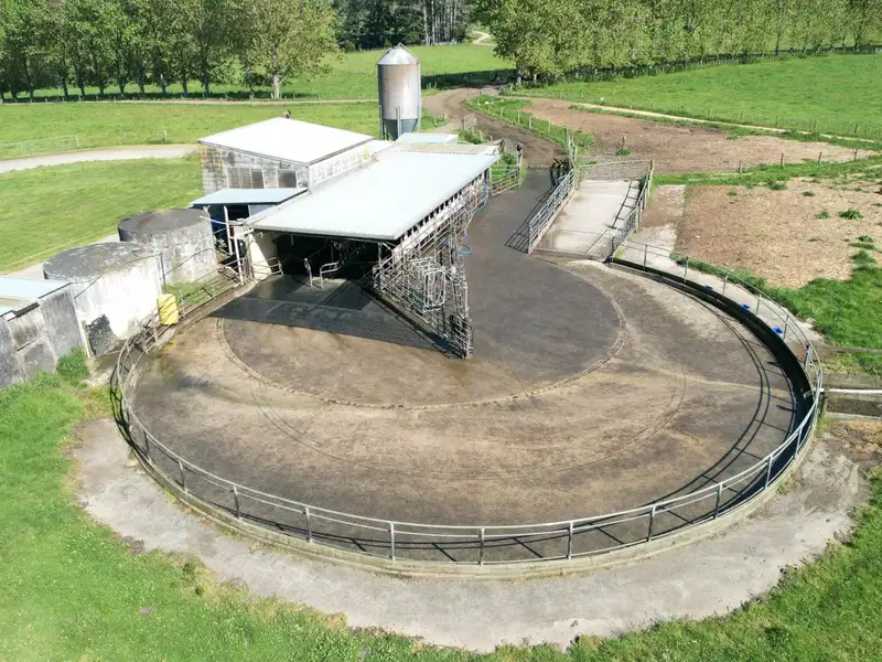 - 17-aside herringbone cowshed with feeding system