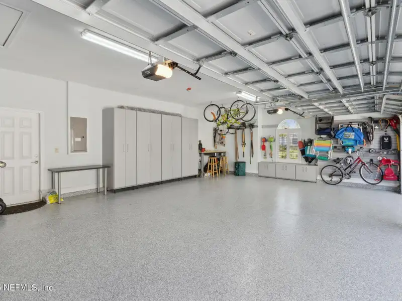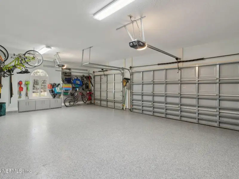 - Three-car garage with storage cabinets