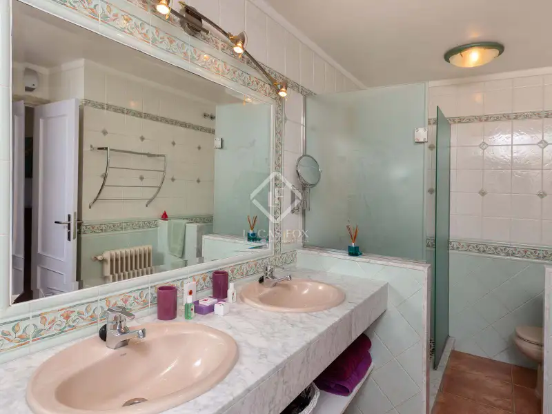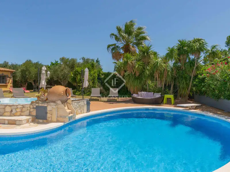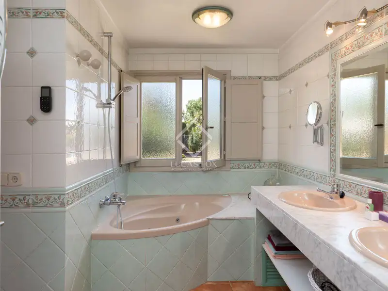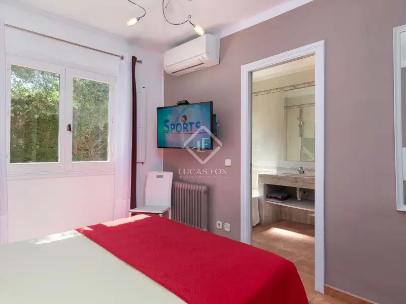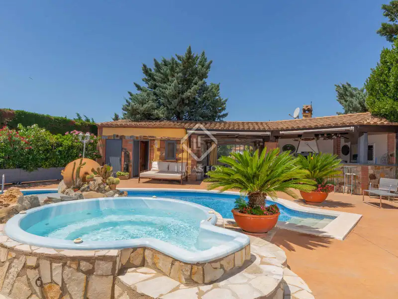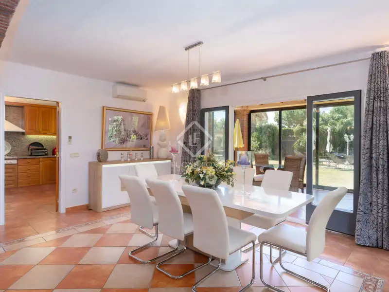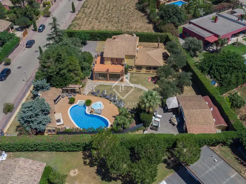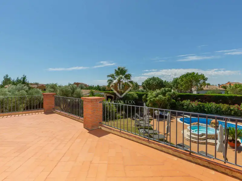 Built in 1999 and maintained in immaculate condition since, this prestigious property sits on a flat plot of 2,051 m² and is only a short walk from the Golf Peralada clubhouse and hotel. The property is composed of the main house, an independent annex and a pool house. The main house was constructed using the highest quality materials and finishes, with wooden beams, stonework and stained-glass windows. Of particular note is the impressive double-height living room, overlooked by an upper gallery. The main centrepiece of the living room is the stone fireplace around which the seating is arranged. Leading off the living room, we find the dining area with sliding doors which open out onto a terrace that runs around the exterior of the house and overlooks the pretty garden. This terrace has been closed to allow for winter use. Leading off the dining area, we find the fully fitted kitchen. The sleeping accommodation is also found on the ground floor with four large double bedrooms, each with its own en-suite bathroom, fitted wardrobes and air-conditioning. Moving up to first floor, we find the open-plan gallery overlooking the living room, which is currently used as a games room. There is a large terrace overlooking the garden leading off the gallery. Outside the property we find the outstanding heated swimming pool area complete with jacuzzi. Here we find everything needed for outdoor poolside entertaining with a chill-out area, a dining area, a bathroom, an outdoor kitchen and bar. Shielded from the main house and pool area, and accessed via a separate vehicle access, we find the annex. The modular annex is currently designed to comprise a living room, small kitchen, bedroom and bathroom, although the interior distribution can be easily modified to the owner’s wishes. Next to the annex, we find a covered parking area for two cars and a separate storage shed. The property represents an excellent opportunity for those who wish to rent out the main house whilst living in the annex, since the property benefits from a tourist licence.