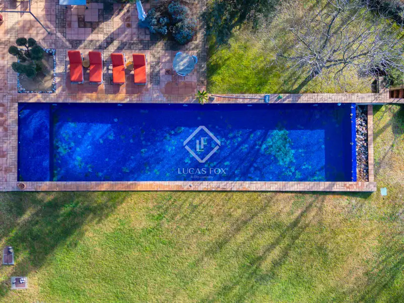 The exterior of the property is just as impressive as the interior. The house is surrounded by a plantation of walnut trees, creating a breathtaking natural environment. The slightly elevated plot, carefully curated garden, and generous 100 m² swimming pool with jacuzzi make this a truly exceptional home.
