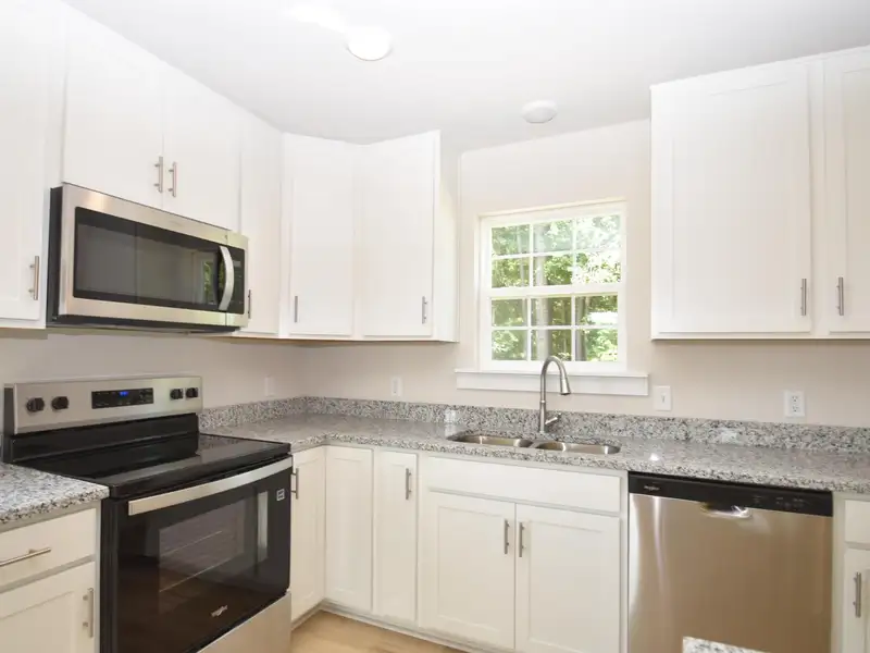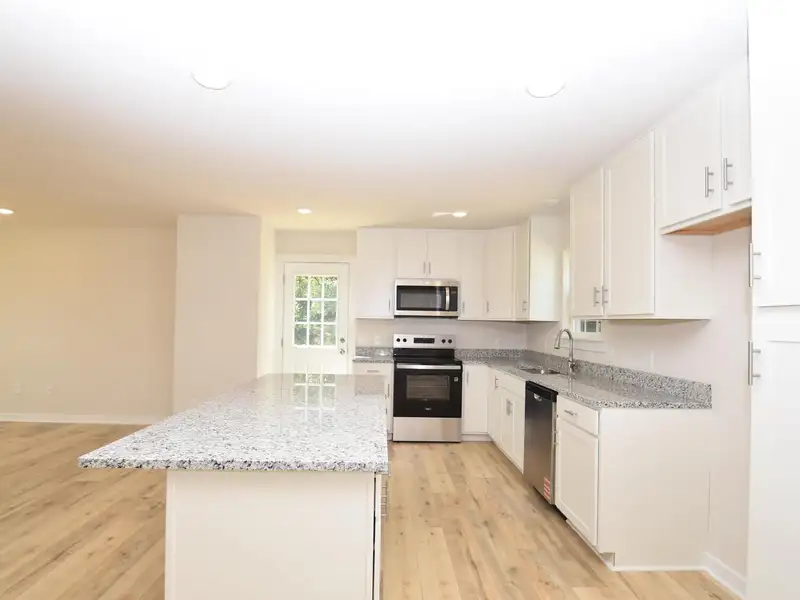 - Kitchen with granite countertops and stainless appliances