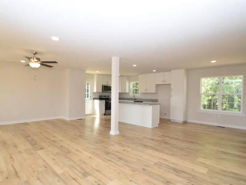 - Open floor plan with laminate flooring