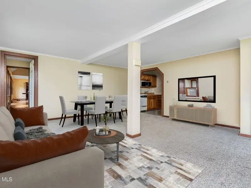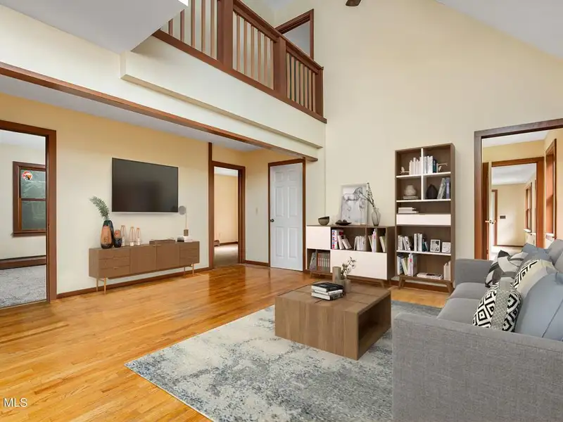 - Open floor plan with hardwood floors