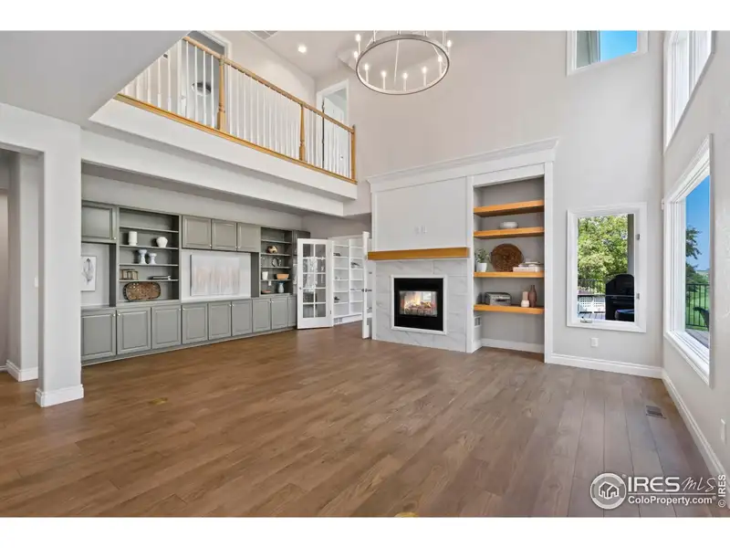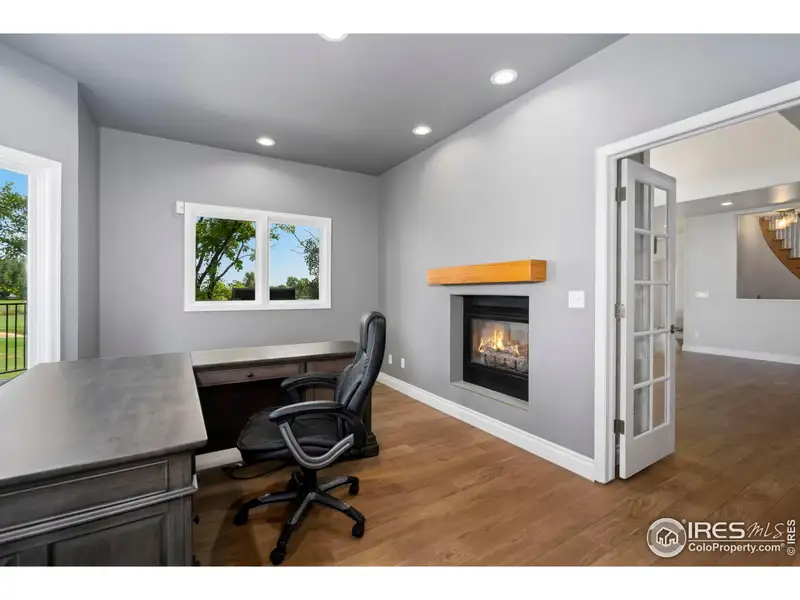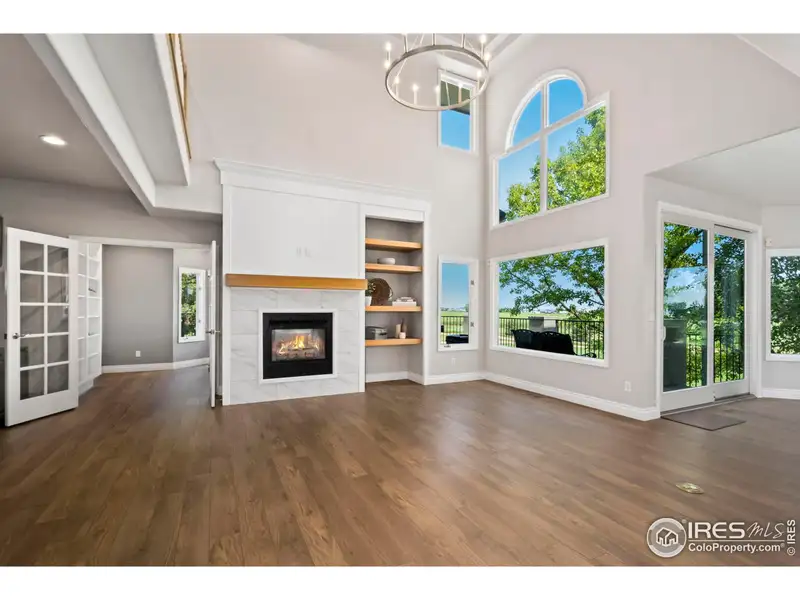 - Double-sided fireplace between living areas
