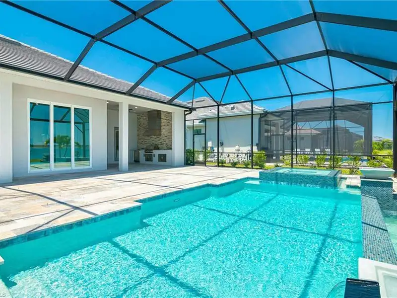 - Infinity pool, spa, and outdoor kitchen