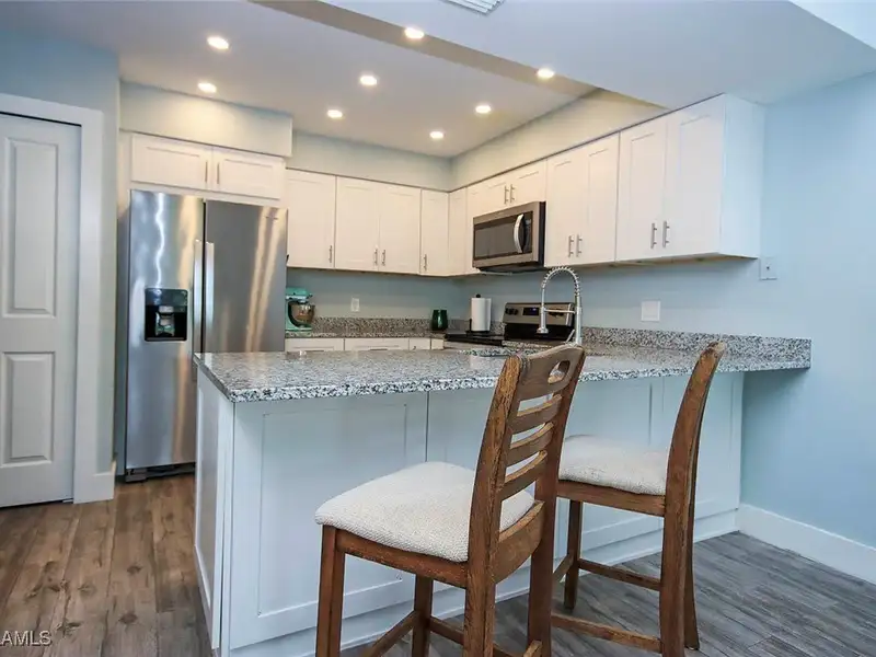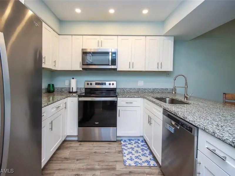 - Granite countertops in kitchen