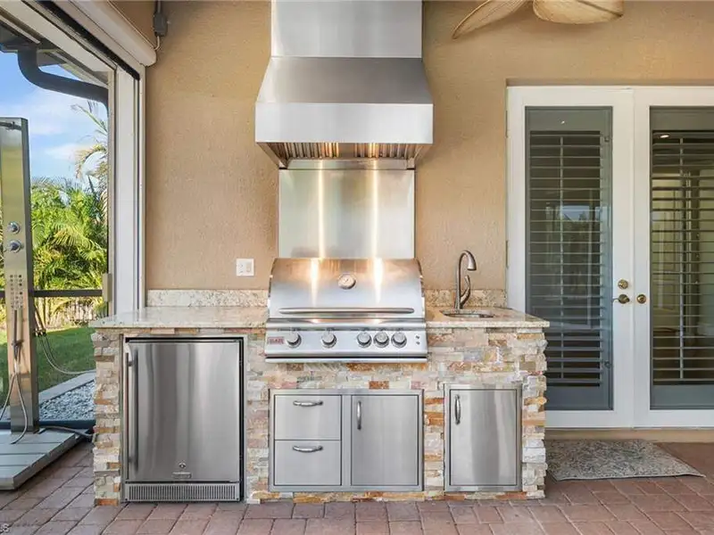 - Stone outdoor kitchen with built-in propane grill