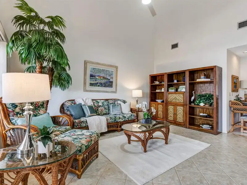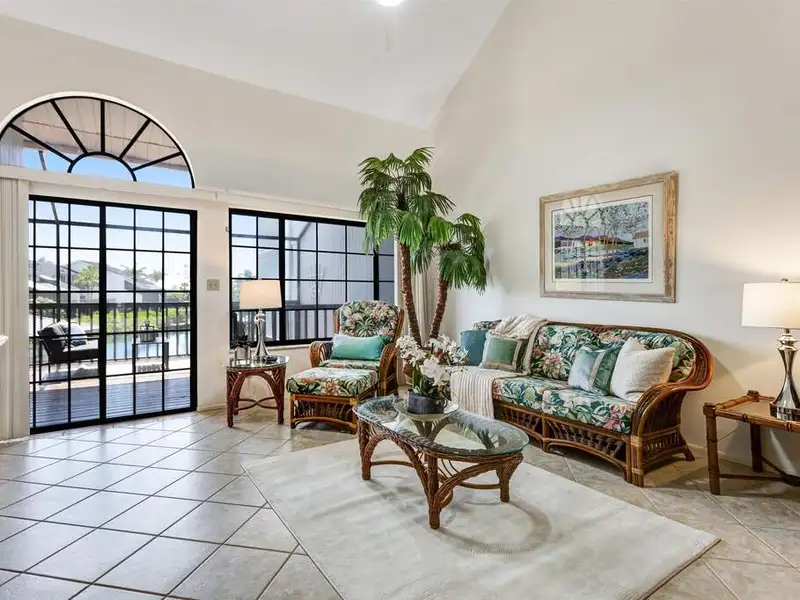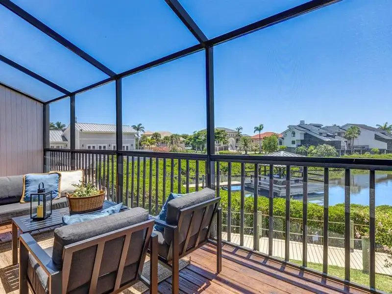 - Expansive screened lanai with sunset views