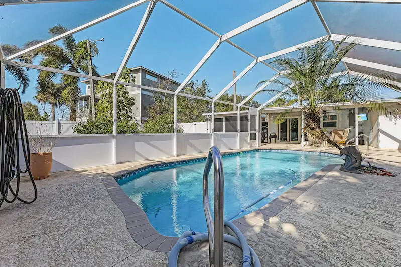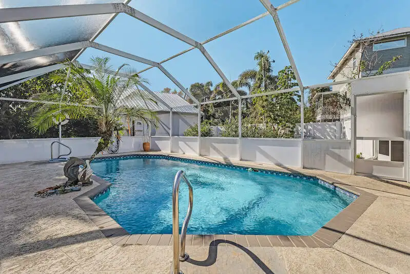 - In-ground pool with screened enclosure