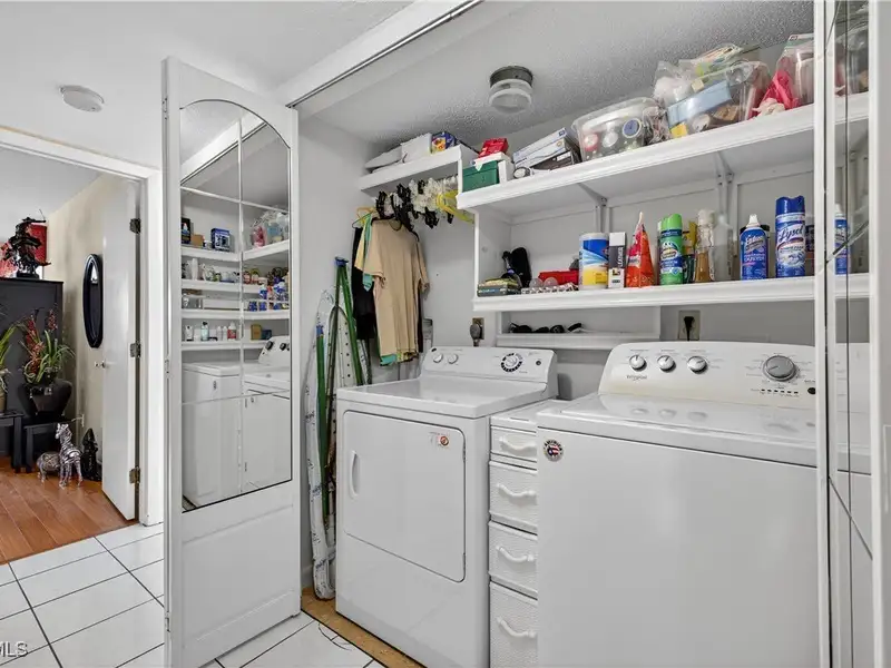 - Includes washer, dryer, and custom laundry shelving