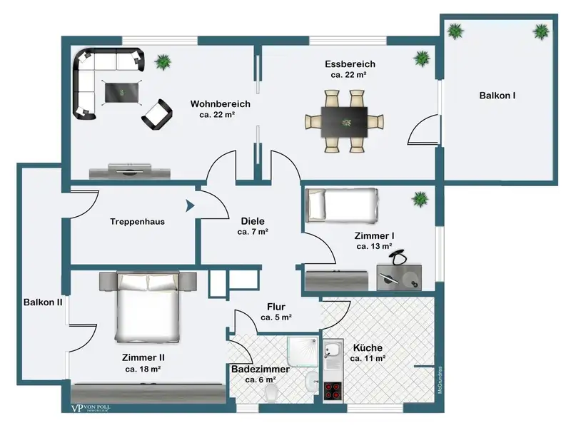 - Two balconies with good views