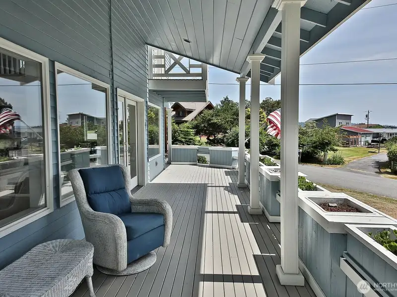 - Covered porch and multiple outdoor seating areas