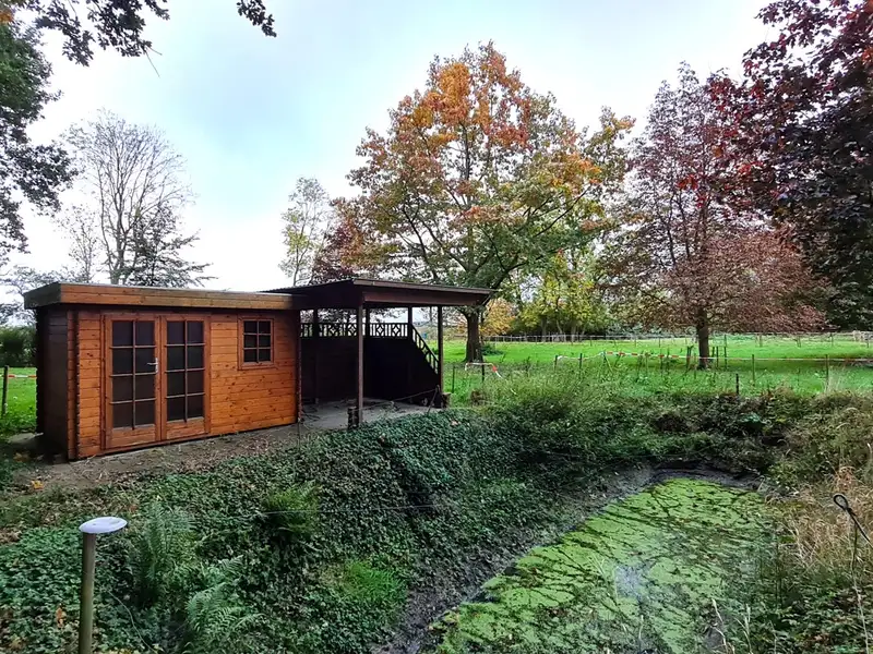 An idyllic pond rounds off the overall picture and creates a special atmosphere. The garden shed is ideal for various leisure activities or craft projects. The extensive garden offers plenty of space for relaxation as well as for creating flower beds or kitchen gardens.