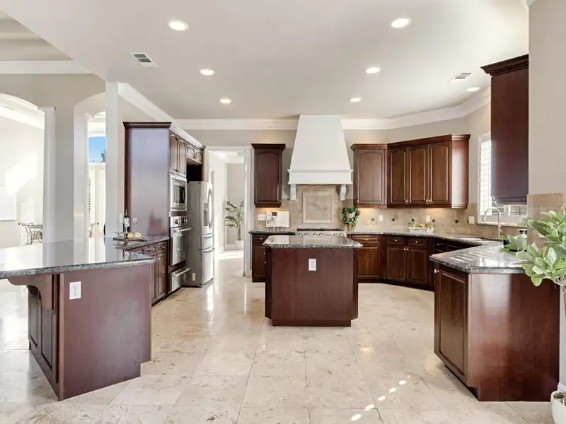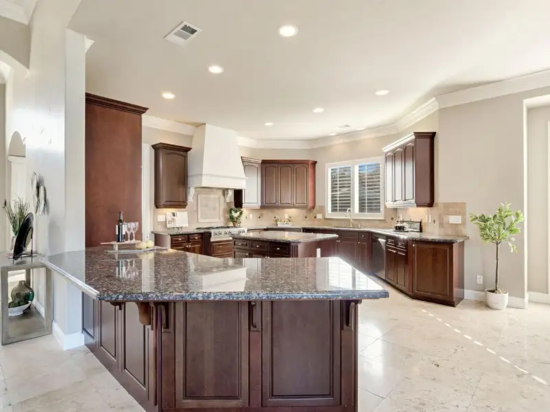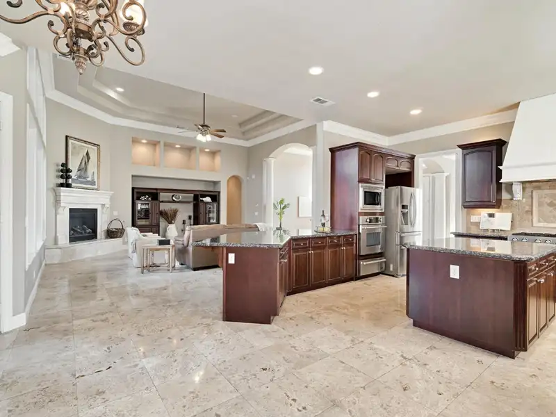 - Gourmet kitchen with 6-burner Jenn-Air range