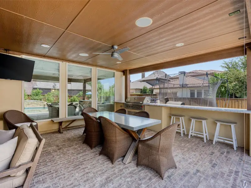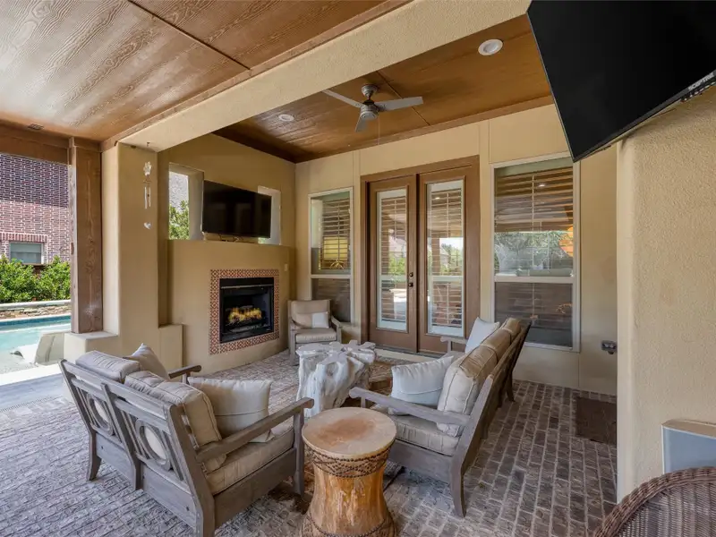 - Covered patio overlooking private pool and hot tub