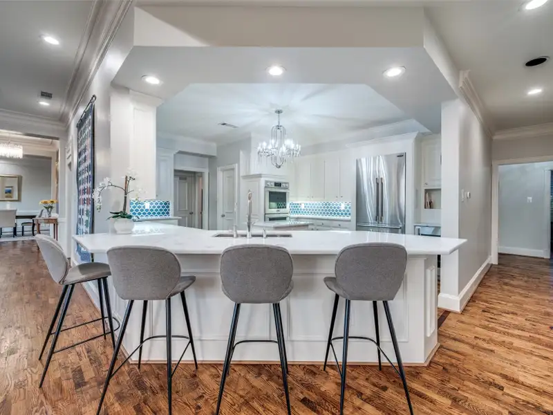 - Updated gourmet kitchen with marble countertops