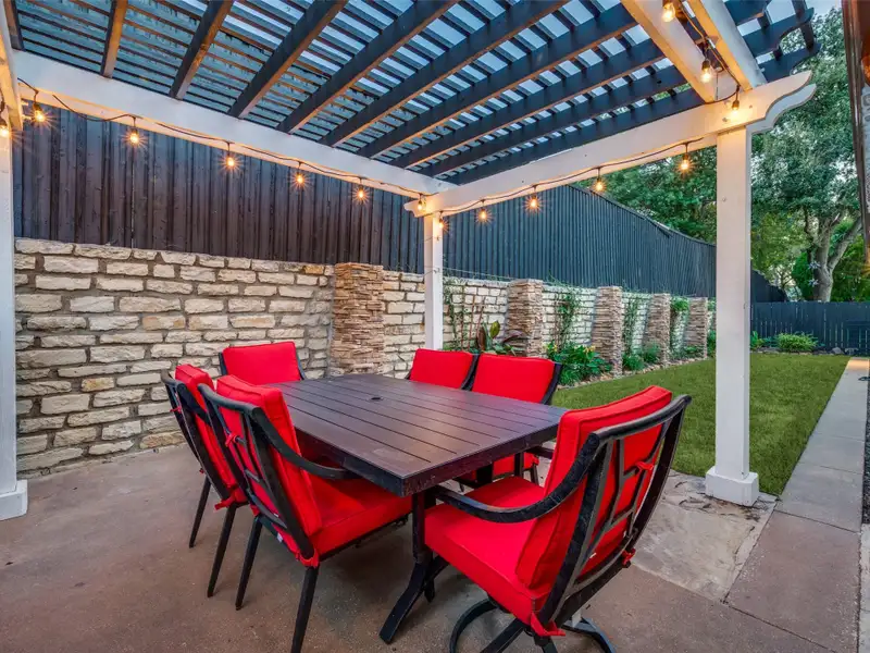 - Covered morning porch and pergola patio