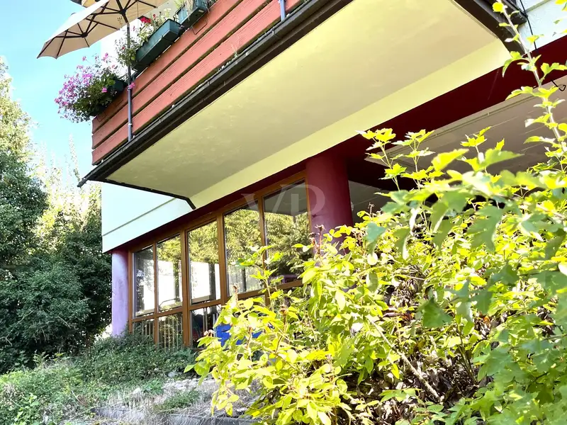 The plot of approx. 1,135 m² with a south-west orientation offers a garden with a slope, mature trees, secluded spots and a covered outdoor seating area. However, the outdoor facilities are somewhat dormant and are looking forward to the ideas and attention of the new owners.