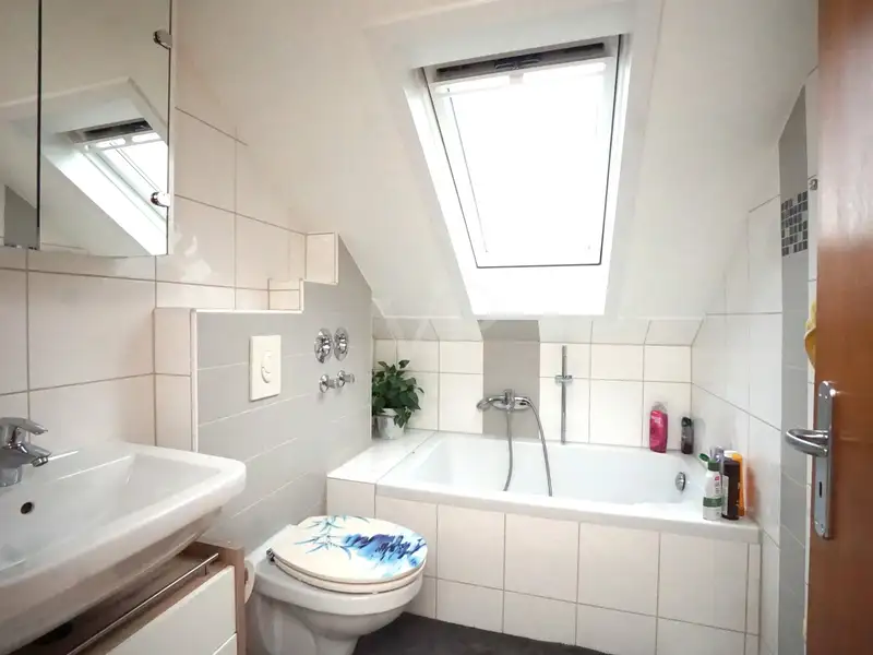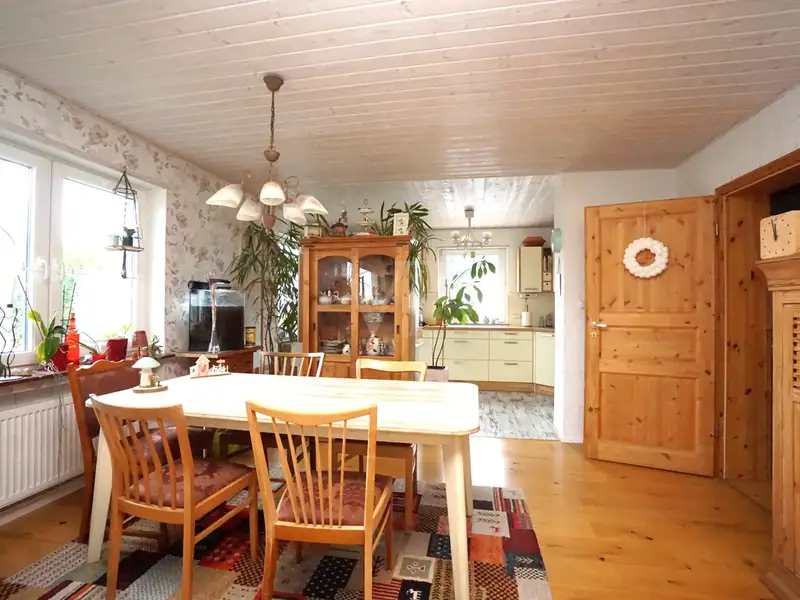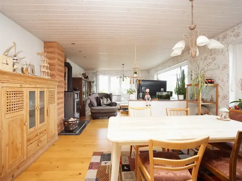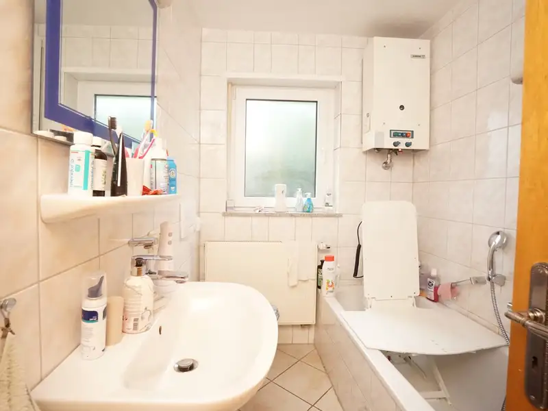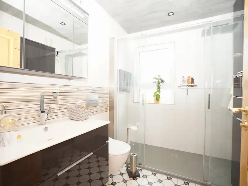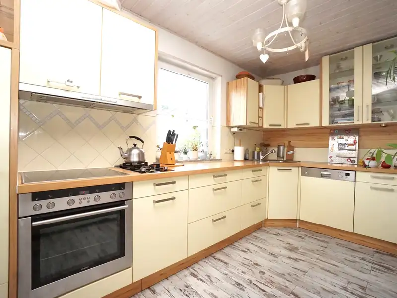 The gas central heating was renewed in 2003. The attic is heated with its own gas floor heating. The bathrooms were renovated in 2022 (ground floor) and 2020 (top floor). Most of the windows were replaced in 2016, only 3 are still from 1986. These are plastic windows with 2-pane insulating glazing. High-quality real wood parquet flooring is laid in the living and dining area and in the bedroom. The two fitted kitchens are also being sold and are included in the purchase price. In 2022, the courtyard, the entrance area and the path by the house were newly paved.