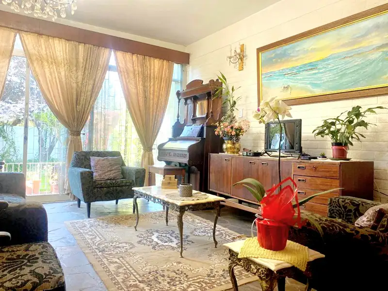 Graceful Formal Living: Delight in the splendor of the open-plan TV and dining rooms, adorned with enduring slate floors, exquisite sliding doors, and captivating chandeliers that evoke a sense of nostalgia.