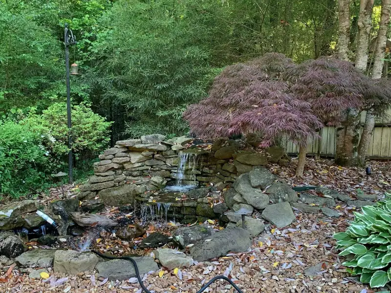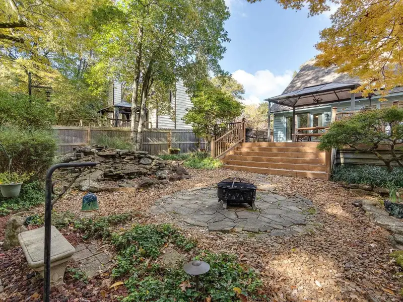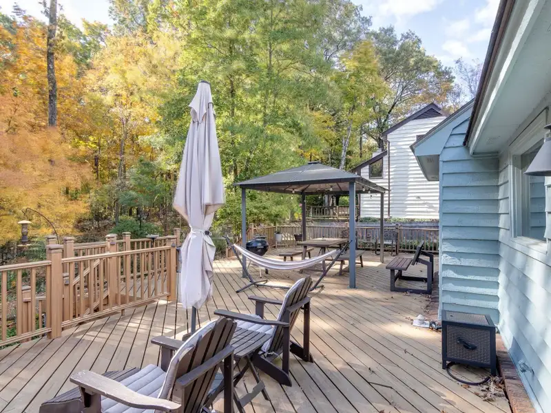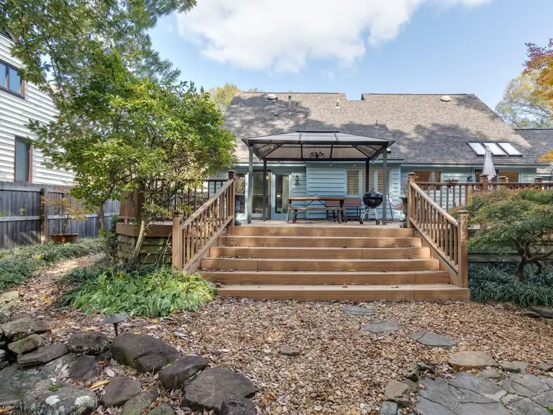 - Composite deck overlooking landscaped backyard