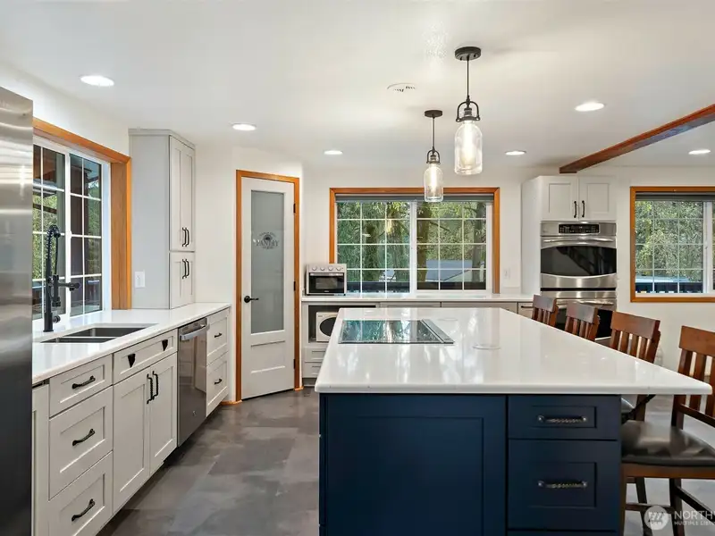 - Updated kitchen with island and double oven