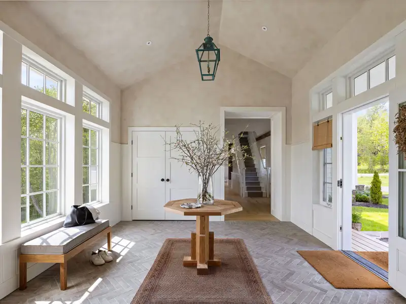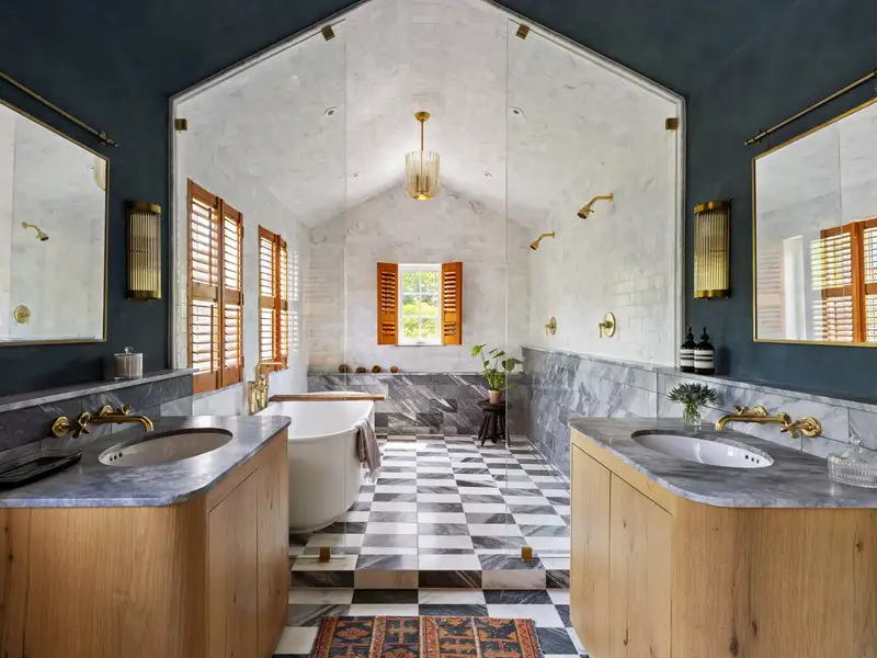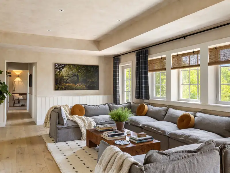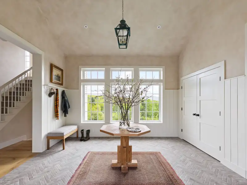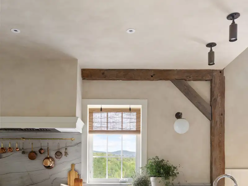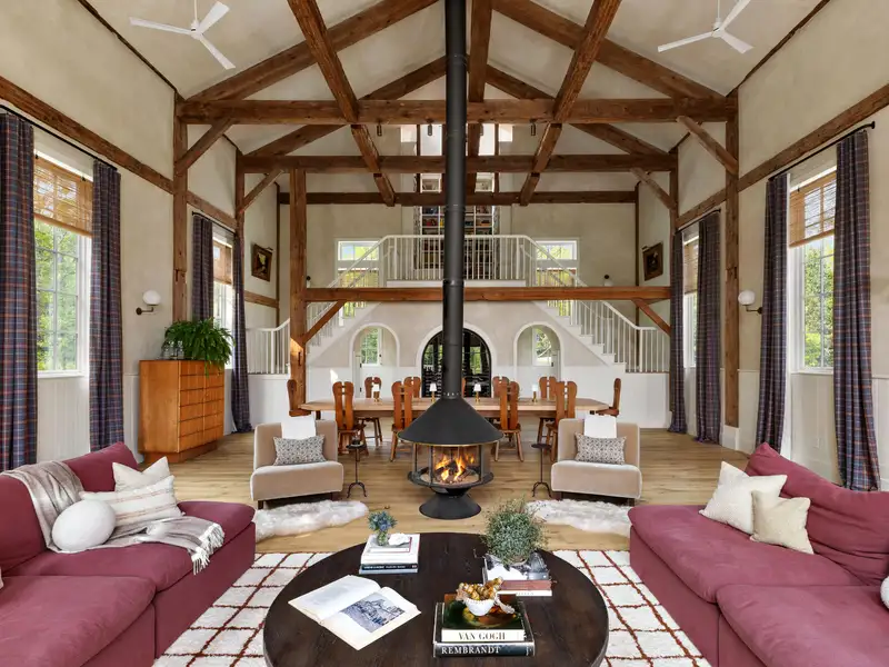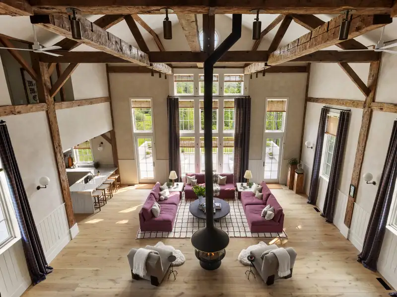 Welcome to Potter Mountain House, a masterfully reimagined Greek Revival church turned luxury designer estate. The original timber-framed structure was constructed in 1837 as the Manorkill Methodist Church, serving its community for over a century before being carefully dismantled and relocated to its current site in Gilboa, NY. Now sited on 37 acres with sweeping Catskill Mountain views, the building began its two-year transformation in 2023 by the boutique design/build firm ICDT Studio into a breathtaking 6,242-square-foot residencehonoring its historic soul while layering in a refined, design-forward sensibility. The result is a one-of-a-kind architectural offering that balances reverence for the past with an intentional, contemporary design ethos.Inside, every detail delivers. The three finished levels are anchored by a soaring Great Room featuring the restored original timber frame, hand-hewn beams, and a full wall of windows that frame the panoramic mountain views. A round, sculptural gas fireplace adds warmth and ambiance between the living and dining spaces, while the chefs kitchen features a 48 AGA induction range, Fisher & Paykel appliances, Waterworks fixtures, and a stunning stone-clad island. A walk-in pantry accented by reclaimed wood beams and lined with Zellige tile completes the space. The spacious, open layout provides a striking balance of style and function for both daily living and entertaining.Ascending a symmetrical dual staircase, the Great Room opens into a dramatic library loft housed within the homes original church cupola, crowned by an 18-foot long, multi-point glass chandelier and custom floor-to-ceiling bookcases. Just off the dining area, a glass-fronted, 625-bottle refrigerated wine room is enclosed by custom arched iron doors. The home offers five bedrooms and four-and-a-half exquisitely finished baths, each appointed with radiant heat, curated tilework, and an artful mix of stone and marble. The secluded primary suite occupies its own private wing and includes a spa-like bath with soaking tub, dual showers, Bardiglio marble, and double vanities framed by custom glass partitions. The walkout lower level features a secondary living room with wet bar, two guest quarters, built-in bunk room, and a spacious laundry suite with double washers and dryers. Lime-washed walls, wide-plank white oak flooring, and bespoke lighting carry a sense of quiet luxury throughout.Outside, multiple entertaining terraces and an expansive rear deck take full advantage of the natural surroundings, while a stream and seasonal waterfalls enhance the sense of tranquility. Additional features include an attached, heated, two-car garage, all-purpose mudroom, and a backyard master plan already prepared with plans for a future pool. Just 20 minutes from Windham Mountain Club, under an hour to Hudson and Albany, and a little over two hours from NYC, Potter Mountain House offers sanctuary, scale, and elevated design. A fully furnished option is also available, providing a true turnkey experience for effortless move-in. Unlike anything else on the marketdistinctive, historic, and telling a story entirely its own.