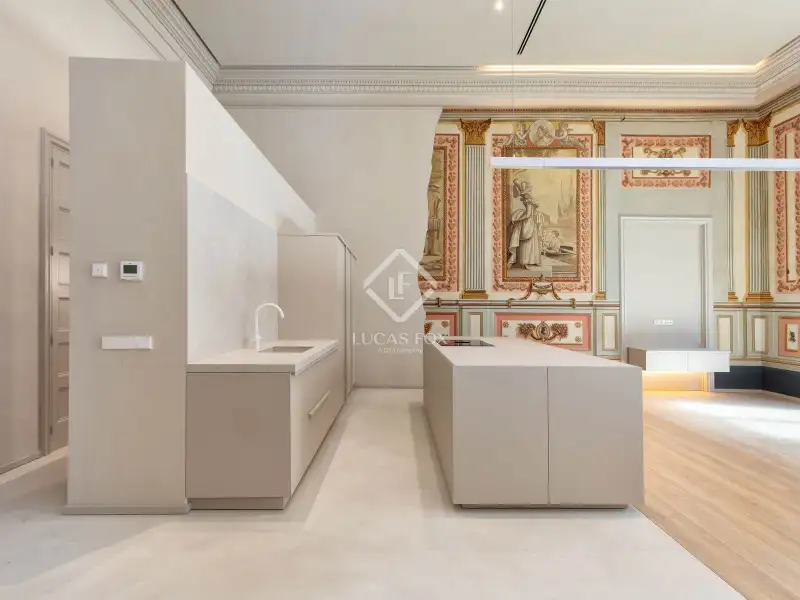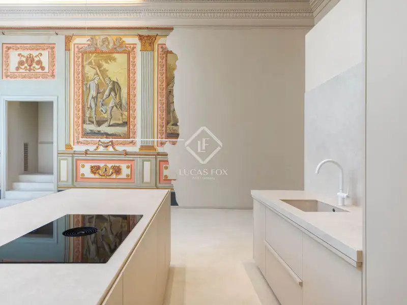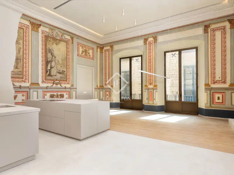 Lucas Fox presents this spectacular new build duplex apartment, located in the emblematic and prestigious Palau Berenguer building, on the central Ciutadans Street, in the centre of the historic Barri Vell. This property, which originally served as offices, has been carefully transformed into a unique property . In the process, period details were preserved, while incorporating all the modern amenities necessary for living in maximum comfort and style. The fusion of traditional design and modern amenities makes this duplex an unparalleled property, ideal for those seeking a primary residence in an enviable location as well as for those wishing to enjoy a second home in one of the most privileged areas of the city. Throughout the property, original architectural elements, such as the impressive stone walls, are arranged, providing a rustic and elegant touch. On the main floor , there is a spectacular open-plan space that houses the living-dining room and the kitchen diner with a central island; all with an impressive height of 6 meters, providing an unparalleled sense of spaciousness and light. The floor is completed with a bathroom with high-quality finishes. It also includes restored 17th-century paintings. On the upper floor , the night area features three double bedrooms, including the main bedroom with private bathroom, as well as a second full bathroom . All bedrooms feature built-in wardrobes and retain their original stone walls, as well as other restored architectural details. Contact us to arrange a visit and discover firsthand everything this magnificent property has to offer.