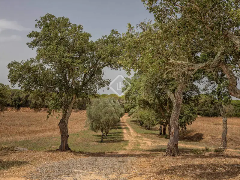 This country house is located on an elevated area that offers beautiful views, within a building with a total of about 14.8 hectares, of which almost 11 hectares are forest, mostly pines and holm oaks. The rest, about 3.3 hectares, correspond to cultivated fields, in addition to about 3,900 m² fenced around the property. The country house that is distributed over two comfortable floors and offers several annexes, such as the guest / guard apartment and some agricultural covers around.