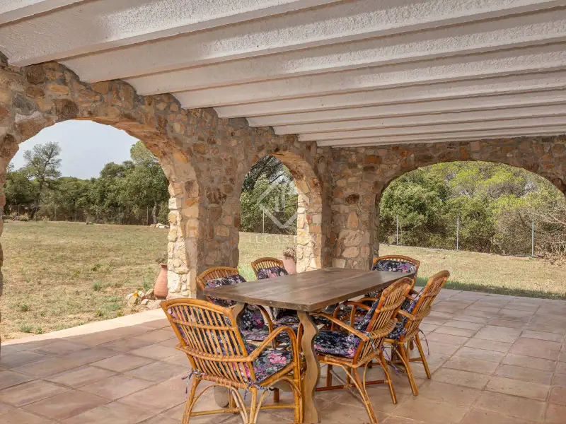 Although the country house needs reforms, it is in a good state of conservation and offers pleasant spaces with a lot of potential. Upon accessing the ground floor, we find a beautiful entrance hall, a wine cellar, a bedroom, the kitchen- dining room room, the living room with a fireplace, connected to the exterior porch, which serves as a summer dining room , and a bathroom. The upper floor consists of four large bedrooms, a bathroom and a terrace with wonderful views of the Les Gavarres natural park.
