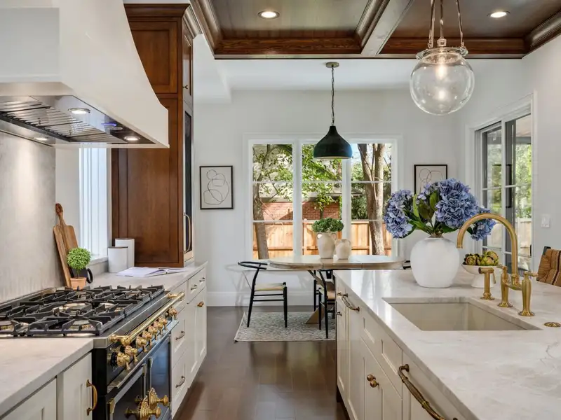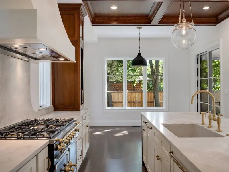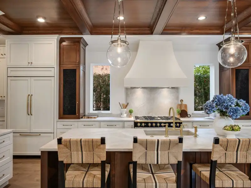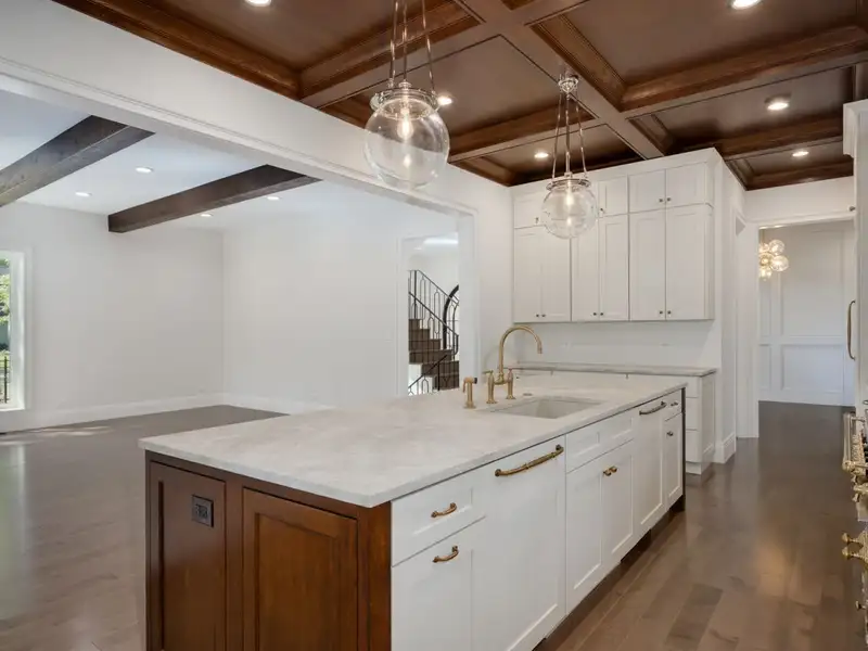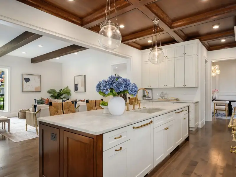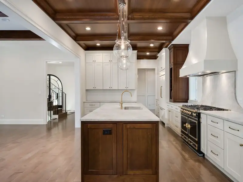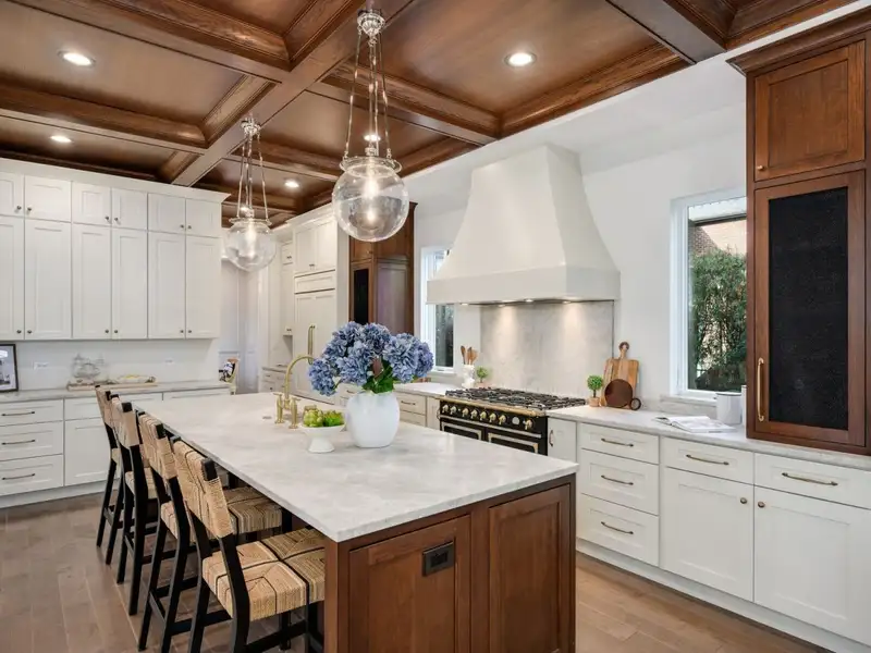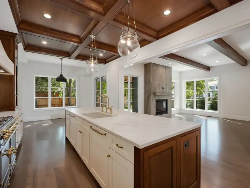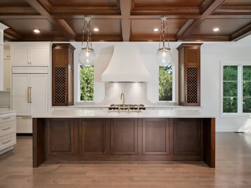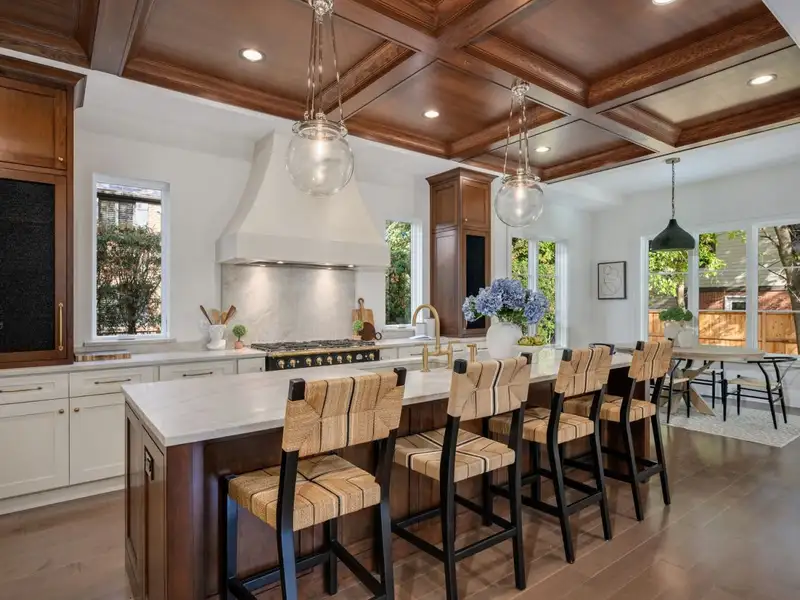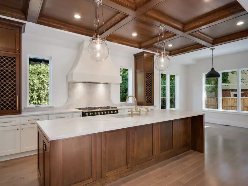 - Oak coffered ceilings in kitchen
