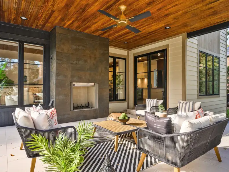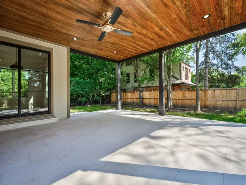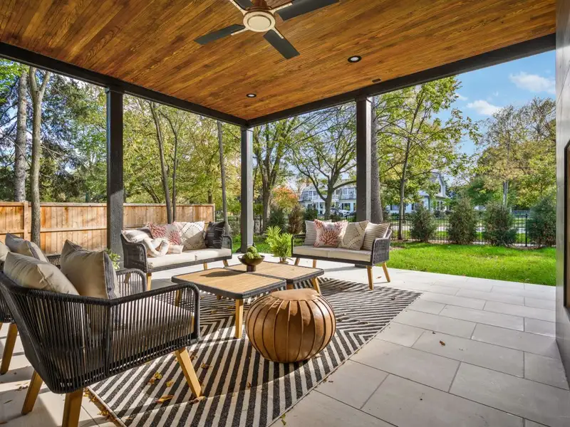 - Fully fenced yard with covered porch