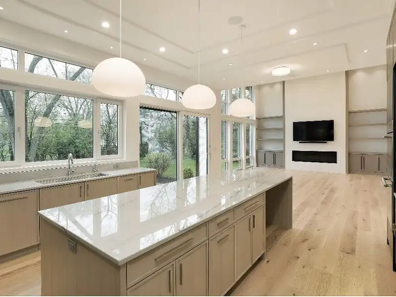 - Floor-to-ceiling windows with garden views