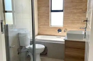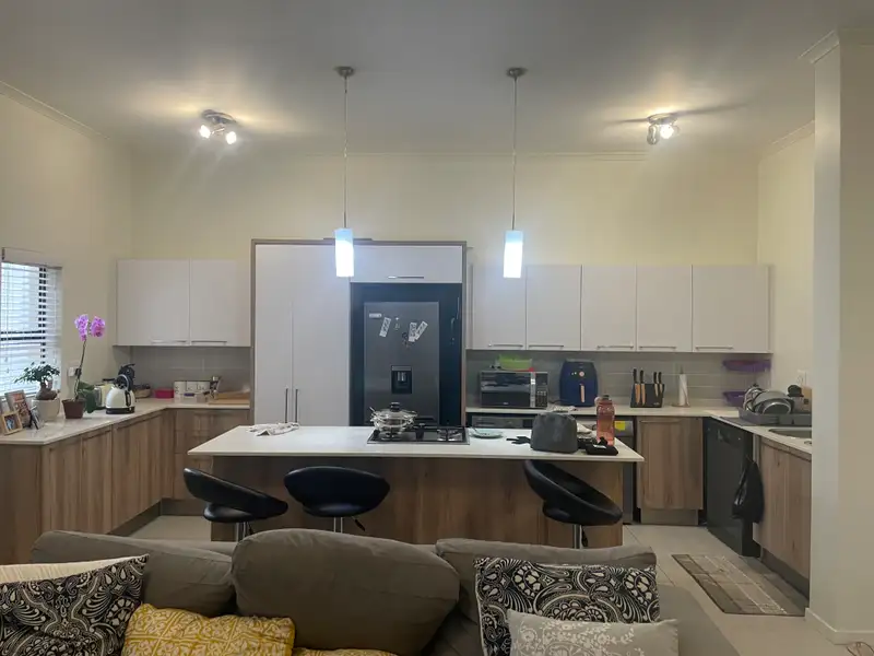 The apartment boasts two spacious bedrooms with built-in cupboards. The main bedroom features an en-suite bathroom with a shower, basin, and toilet, while the second bedroom is serviced by a full bathroom with a bath, shower, basin, and toilet. The kitchen is thoughtfully designed with ample storage, a gas stove, double basins, space for a double-door fridge, and provisions for two under-counter appliances. Balcony with a built-in gas braai creates the ideal setting for relaxed entertaining throughout the year. Additional highlights include a gas geyser, and two covered parking bays. Golden Fields Estate is a new development within the Louwlardia community in Centurion. The development includes stands, apartments and full title houses with excellent 24-hour security, access control with guardhouse, making this Estate a secure family environment. This Estate is also centrally located to allow easy access to major highways N1 and N14 – offers top schools in the area, including Trinity House School and Southdown’s College. Relax and enjoy the communal swimming pool and braai facilities and dedicated kids ‘play area. Close to various shopping centres and gym.