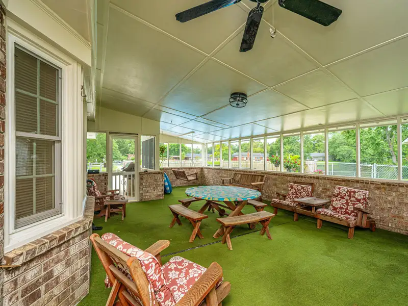 - Large screened porch and fenced yard