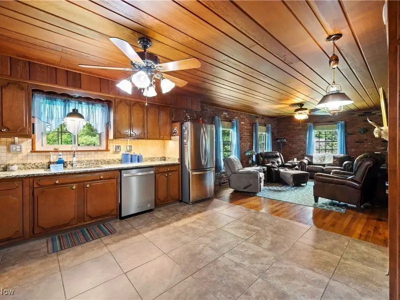 - 4. Kitchen with granite counters and wood cabinets