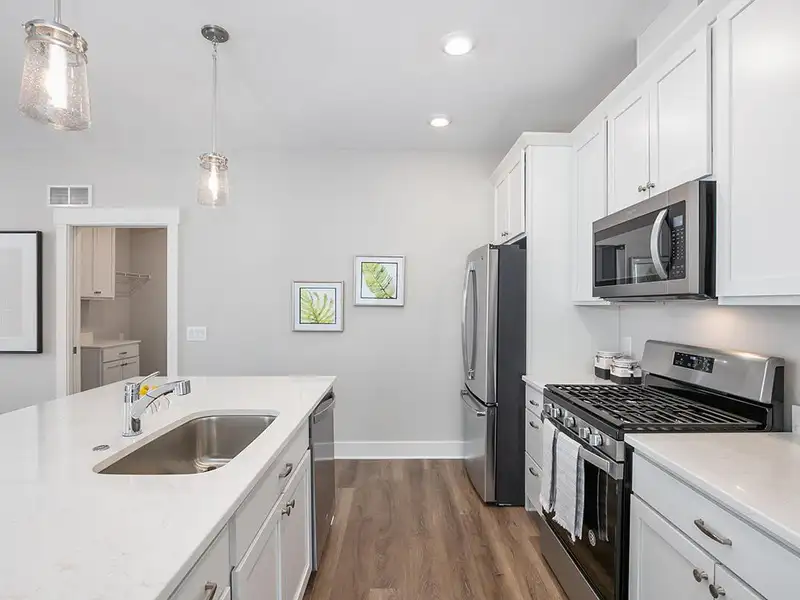 - Quartz or granite countertops