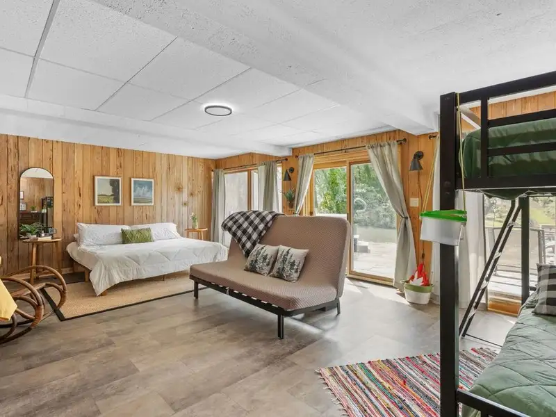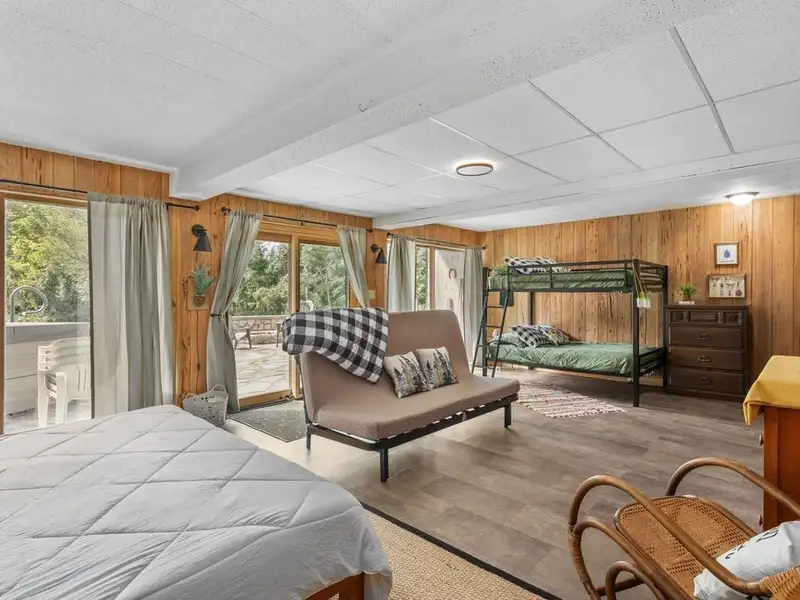 Drive past the stone entrance and through the private gate to discover Hickory Haven?your peaceful retreat just minutes from shopping, restaurants, and less than 10 minutes from the University of Notre Dame. Located in desirable Granger, Indiana, and just over a mile from the Michigan state line, this versatile property offers 1.33 acres of wooded rolling landscape, creating a true getaway while keeping you close to it all. Stunning views can be enjoyed from every room, bringing the outdoors in and making nature a part of your daily living. The cozy cabin-inspired interior features vaulted ceilings, a grand stone fireplace, and warm natural finishes that create the perfect setting for relaxing, entertaining, or hosting family holidays. With two bedrooms, two full baths, and a lower level that has been used as a third sleeping area with room to lounge and watch the game, there's plenty of space for family and friends. The home comes fully furnished and includes a hot tub, custom fire pit, gas grill, and a covered oversized patio with plenty of seating?perfect for enjoying every season. The walk-out basement makes it easy to move between indoor and outdoor spaces, while the detached barn offers space for three cars and endless possibilities?workshop, storage, or hobby space. Once a successful Airbnb, Hickory Haven has been meticulously cared for and updated in recent years. A full list of updates is available upon request. Whether you're looking for a full-time home surrounded by nature or a game-day retreat close to Notre Dame, this property is unlike anything else on the market. Schedule a private showing today and experience the charm and privacy for yourself. Agents See Remarks* Open house Friday, September 19, from 4:00 PM to 6:00 PM.