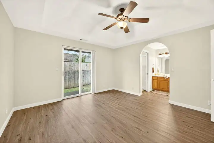 - Covered patio with backyard access