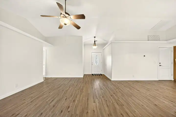 - Open floorplan with vaulted ceiling
