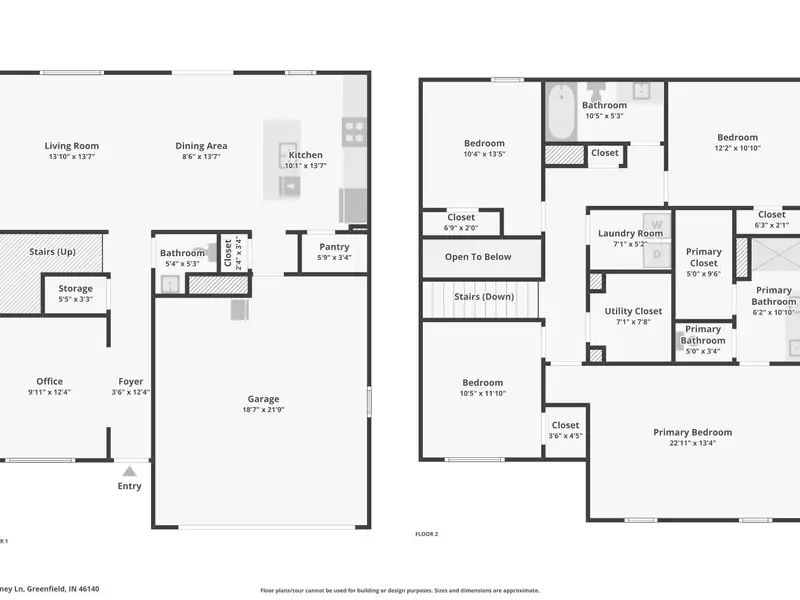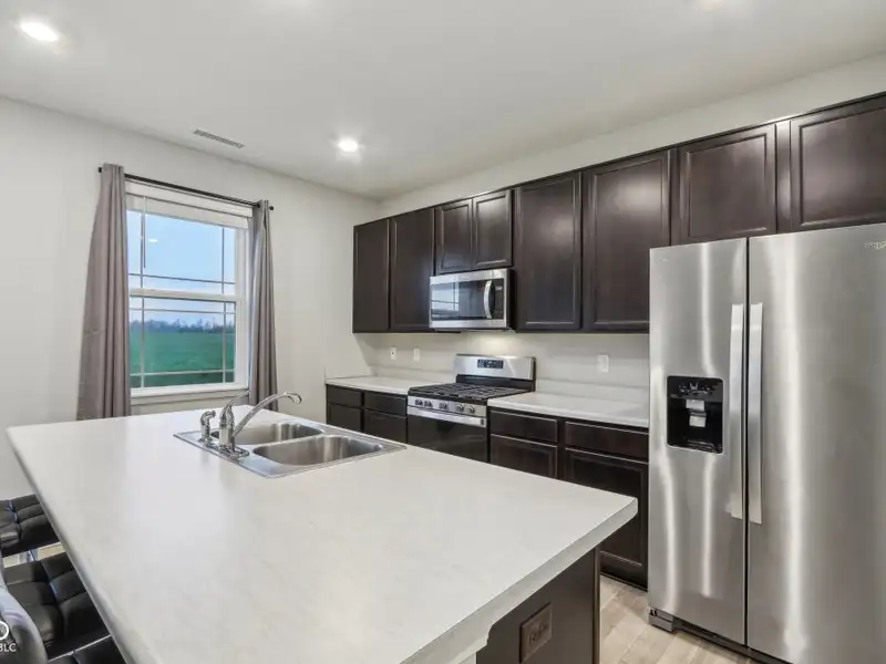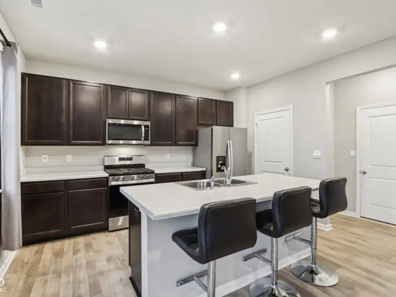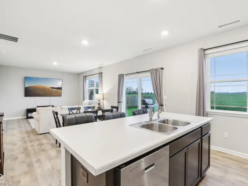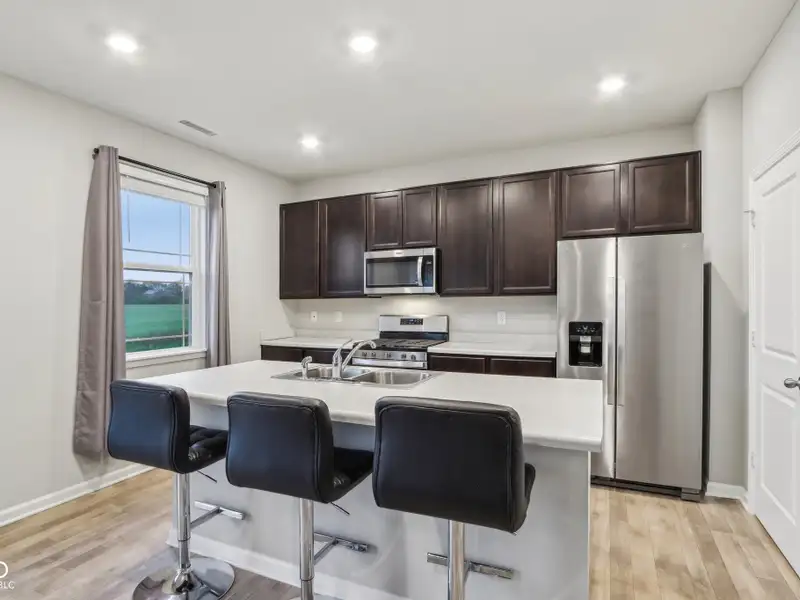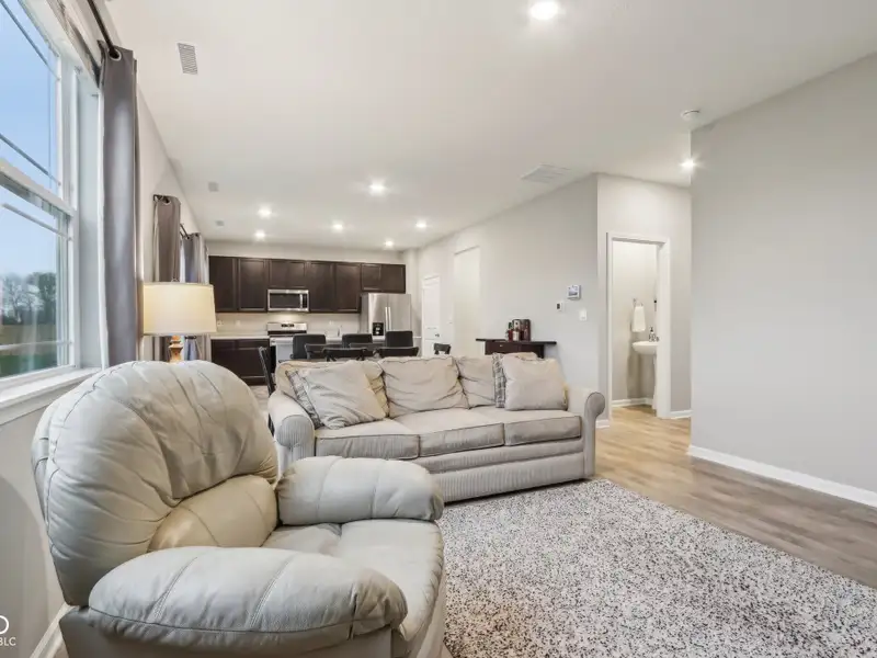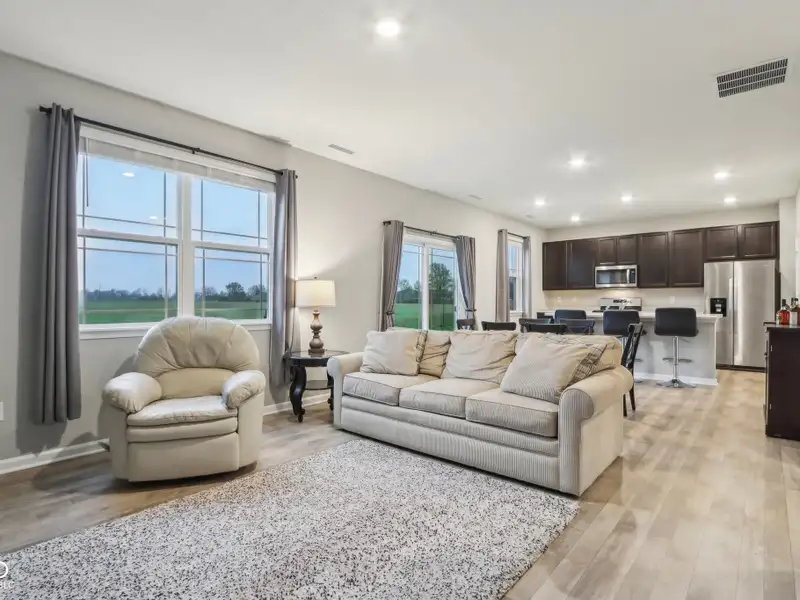 Welcome home! This spacious Greenfield home offers room to grow, play, and relax in style. Boasting over 2,100 square feet, 4 bedrooms, and 2.5 bathrooms, this home features an open-concept layout that seamlessly connects the living, dining, and kitchen areas, perfect for entertaining or enjoying cozy nights in. The main level also has raised ceilings and a bonus room, ideal for a home office, playroom, or extra lounge space. Upstairs, the primary bedroom offers plenty of space along with a walk-in closet, as well as an en suite bathroom with double vanity, and walk-in shower. Three additional guest rooms, guest bathroom, and laundry room are also conveniently located on the second level. Enjoy added privacy with no neighbors behind the home, and take advantage of the great location, which is close to everything in Greenfield and a short 30 minute drive from downtown Indianapolis and Geist Reservoir. This one checks all the boxes-don't miss it!