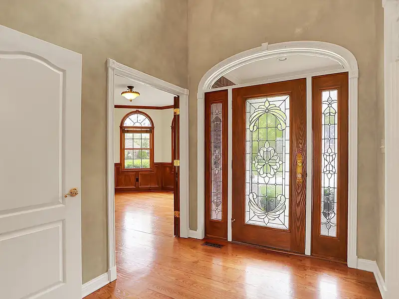 - Grand two-story foyer with hardwood floors