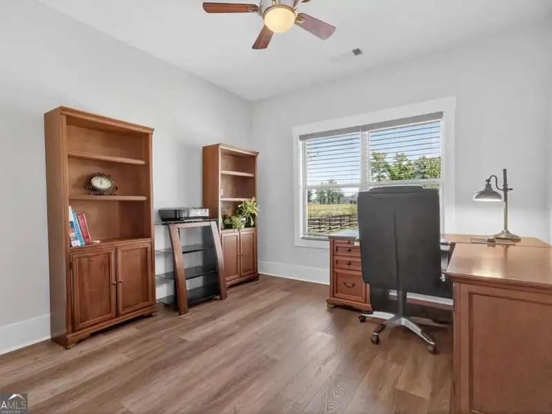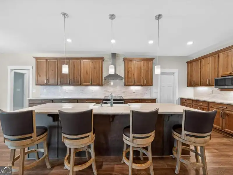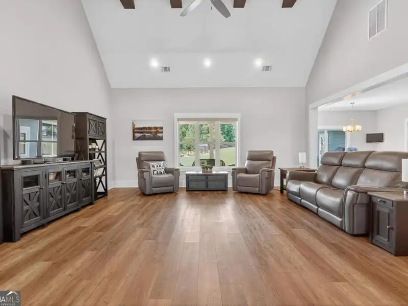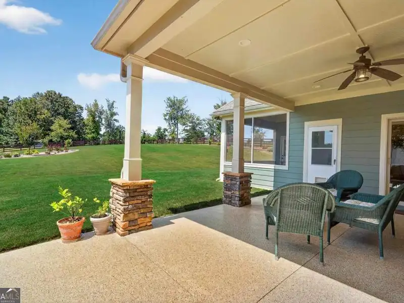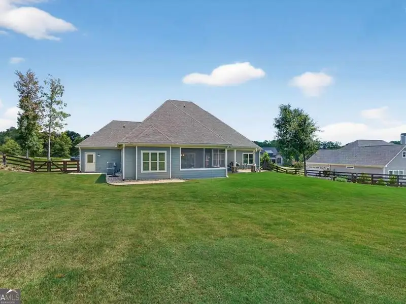 Discover Your Dream Home at Lake Oconee! Experience unparalleled craftsmanship and thoughtful design in this stunning 2021 custom-built home, nestled on a generous 1.23-acre lot within the gated Bayside community. Privately situated yet close to Lake Oconee's vibrant amenities, this residence boasts seasonal lake views and a deeded boat slip, providing a perfect balance of privacy and access to outdoor adventures. Step inside the home to a spacious great room featuring vaulted ceilings adorned with decorative beams and expansive windows that fill the space with natural light. The open-concept layout seamlessly connects the great room to the gourmet kitchen, where a magnificent 10-foot island with a farmhouse sink takes center stage. Rich hickory cabinetry offers ample storage, complemented by elegant quartzite countertops and a vented range hood for functional beauty. A well-appointed walk-in pantry enhances everyday convenience. The main-level primary suite is a serene retreat, complete with vaulted ceilings, direct access to a screened porch, and a generous walk-in closet. The luxurious ensuite bathroom features a large walk-in shower, a stylish quartz-topped double sink vanity, and porcelain tile flooring. Two additional spacious bedrooms and a full bath are also located on the main floor. Ascend to the upper level, where a private suite awaits, offering flexibility for guests or a dedicated workspace. This suite includes a bedroom, full bath, living area, and a kitchenette for added convenience. Additional storage is easily accessible through the walk-in attic. The two-car garage, finished with low-maintenance epoxy flooring, connects to a versatile flex space accessible via carriage doors; ideal for a golf cart, gym equipment, or even a pet-washing station with a utility sink. The fully landscaped yard features a large fenced area, storage shed, and two outdoor living spaces. Enjoy dining al fresco on your screened porch or relaxing with a book or glass of wine on the back patio. Both spaces are great for entertaining! As a Bayside resident, you'll enjoy a maintenance-free deeded boat slip (#14) with new composite decking, access to a private boat ramp, and a lakeside common area complete with a gazebo, fire pit, picnic tables, putting greens, and boat cleaning facilities. This exceptional home is situated just minutes from Lake Oconee Academy, St. Mary's Hospital, and I-20, offering the perfect blend of luxury and low-maintenance lake living.