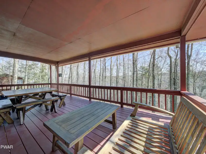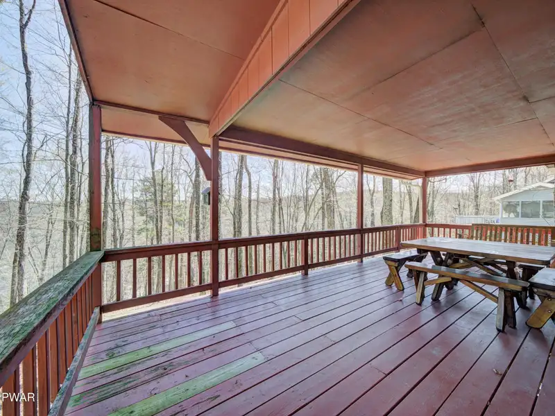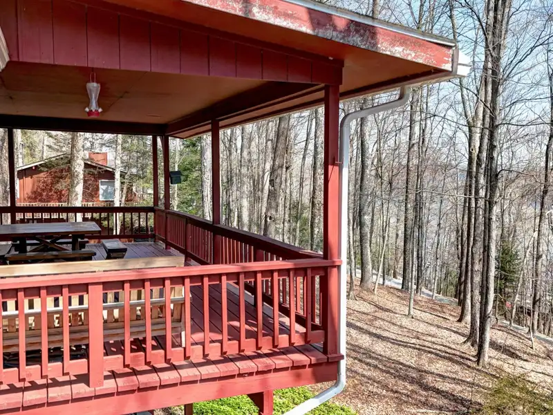 - Covered deck with seasonal lake views