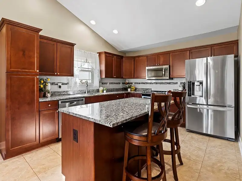 - Oversized granite eat-in bar