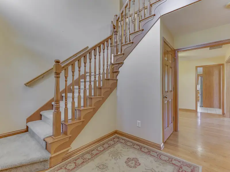 Well cared for 2 Story home with full finished basement in popular Walnut Woods featuring spacious great room with hardwood floors cathedral ceiling and gas fireplace leading to nice kitchen with granite counters,stainless steel appliances and breakfast bar and gathering room all with tile floors. The primary bedroom has separate shower,whirlpool tub,dbl vanity and walk-in closet . In the finished basement you will find a large family room with gas fireplace and daylight windows and raised ceiling plus 4th bedroom and den with walk-in closet and daylight windows. Recent improvements include HVAC system new in 2020 roof 2016 windows 2018 water heater 2024 and dishwasher 2021. Please note home wired for DSL and EV outlet in garage. Enjoy evenings sitting on 27x22 L-shaped Trex deck new in 2019 overlooking pond all located on peaceful setting and quiet street. Home is in move-in condition and immediate possession available!!