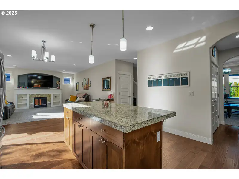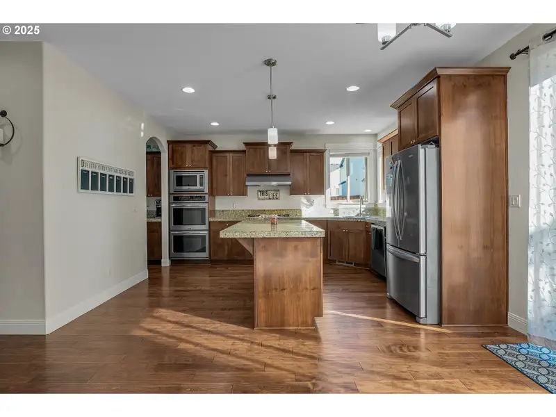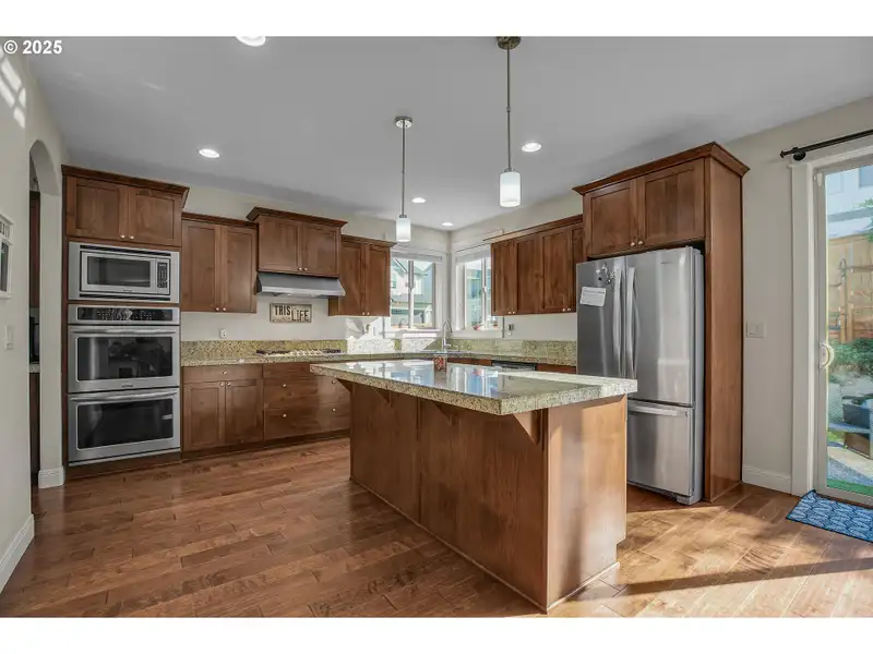 - Kitchen with double ovens and granite counters